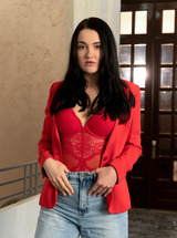 Eva Red In Black Heeled Brunette